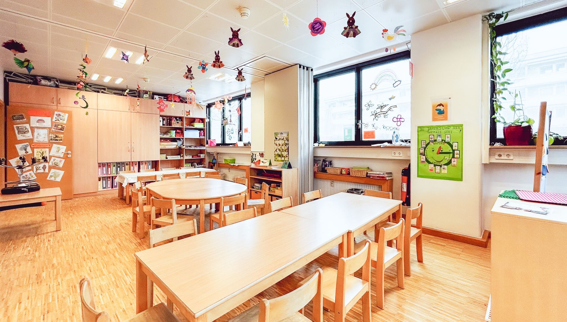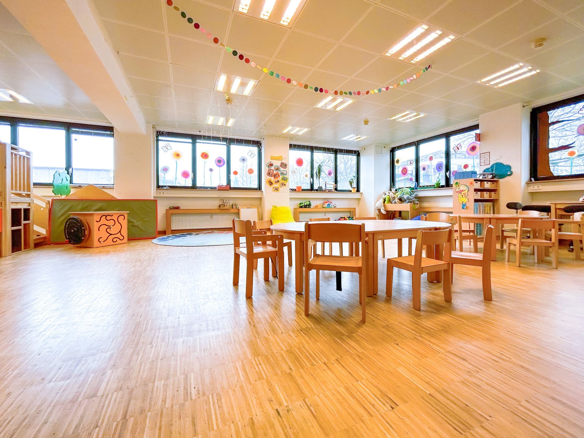 In unseren freundlichen, kindgerecht eingerichteten Räumen lässt sich der Kita-Alltag vielseitig gestalten – eine familiäre Atmosphäre vermittelt Wärme und Geborgenheit. Im Garten spielen und toben die Kinder täglich und bei jedem Wetter – Ausflüge, Feste und besondere Aktionen sorgen für zusätzliche Abwechslung.