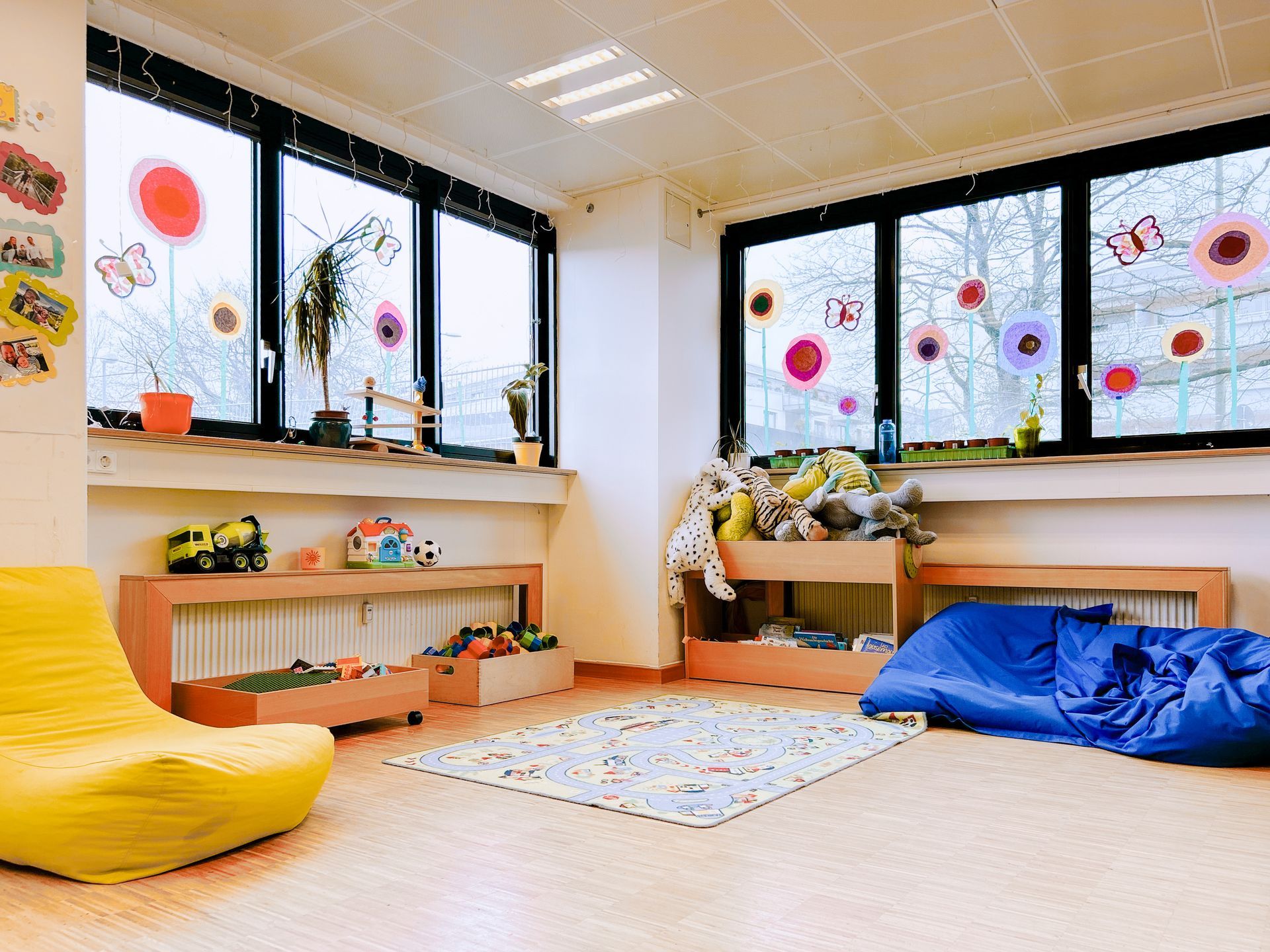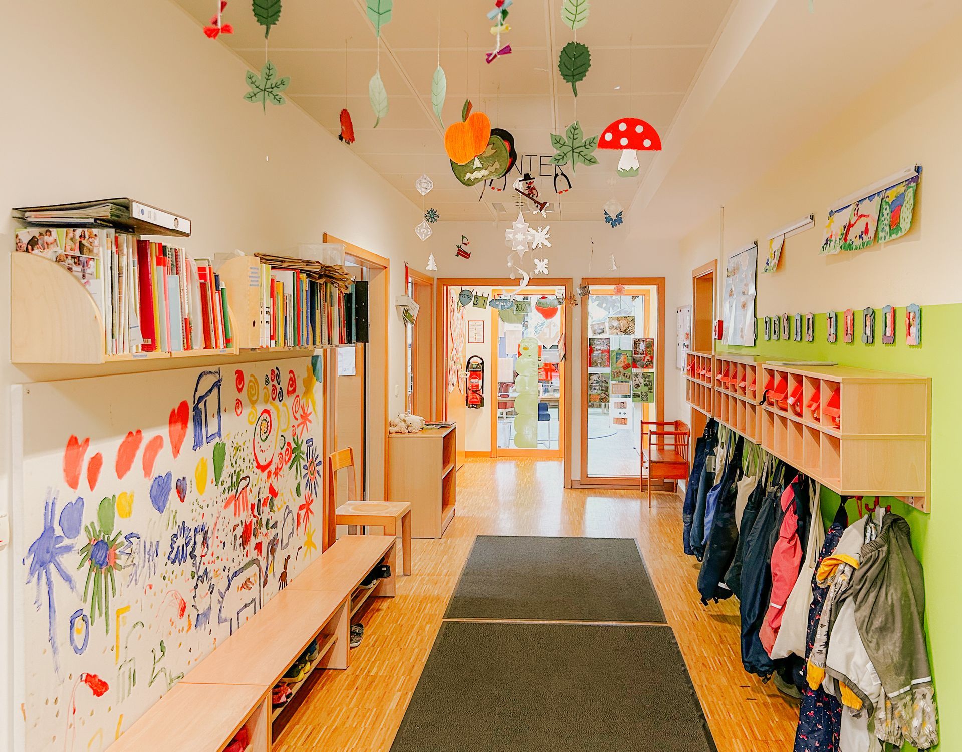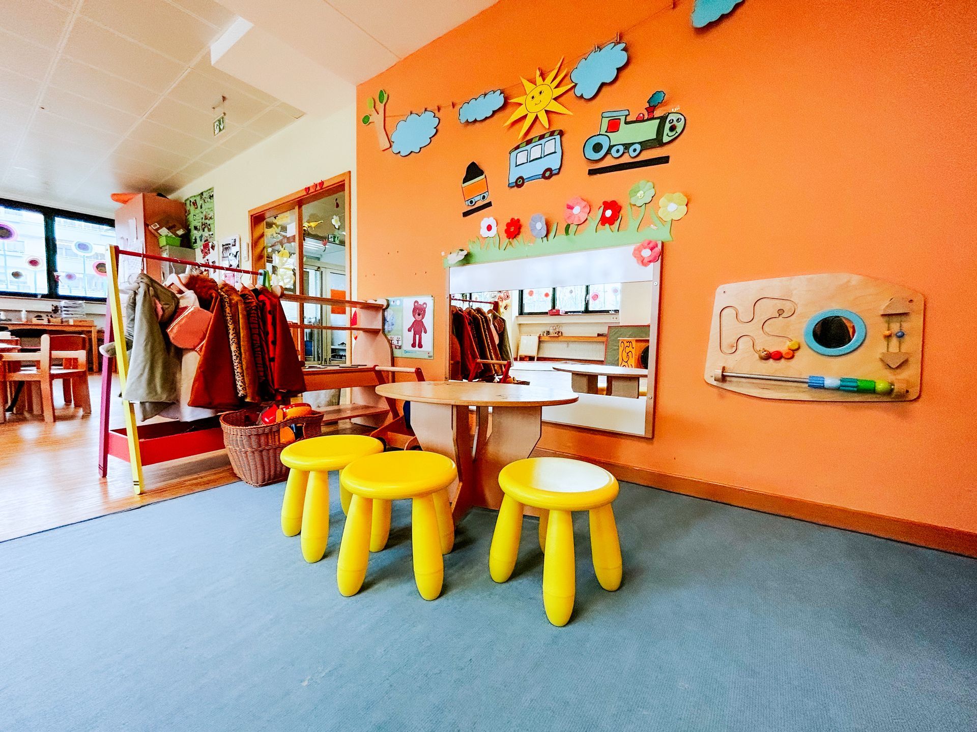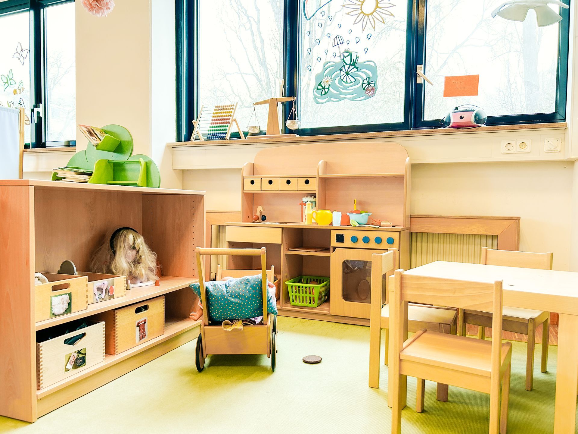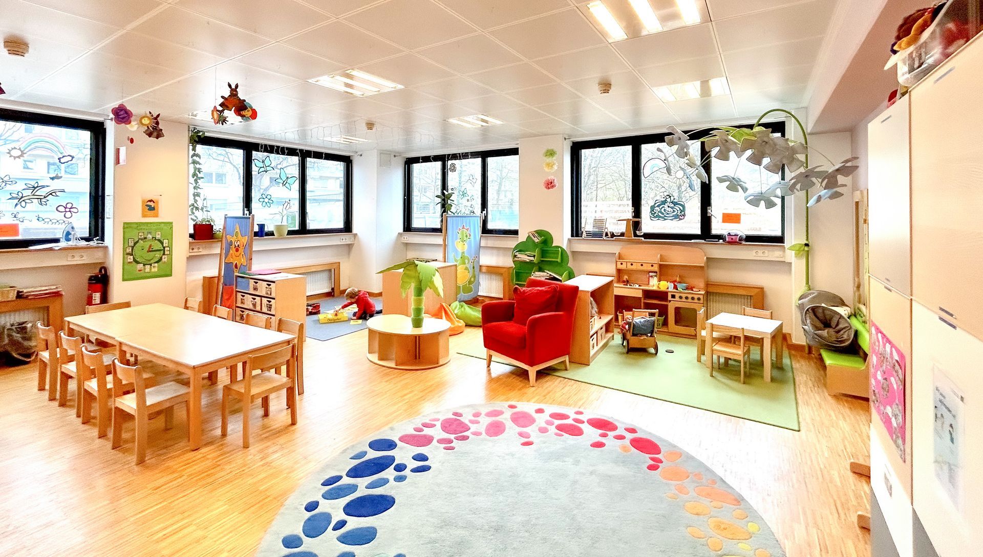 In unseren freundlichen, kindgerecht eingerichteten Räumen lässt sich der Kita-Alltag vielseitig gestalten – eine familiäre Atmosphäre vermittelt Wärme und Geborgenheit. Im Garten spielen und toben die Kinder täglich und bei jedem Wetter – Ausflüge, Feste und besondere Aktionen sorgen für zusätzliche Abwechslung.
